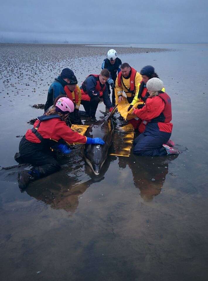 The animal was immediately covered with wet towels. The couple quickly called the British Divers Marine Life Rescue (BDMLR) and the SSPCA to help the poor dolphin.